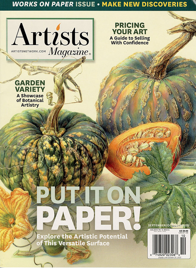 Happy to have my heirloom squashes on the cover of Artists Magazine. A very nice article inside by Anne Hevener featuring botanical artists Mary Dillon, Christiane Fashek, Margot Glass and myself.